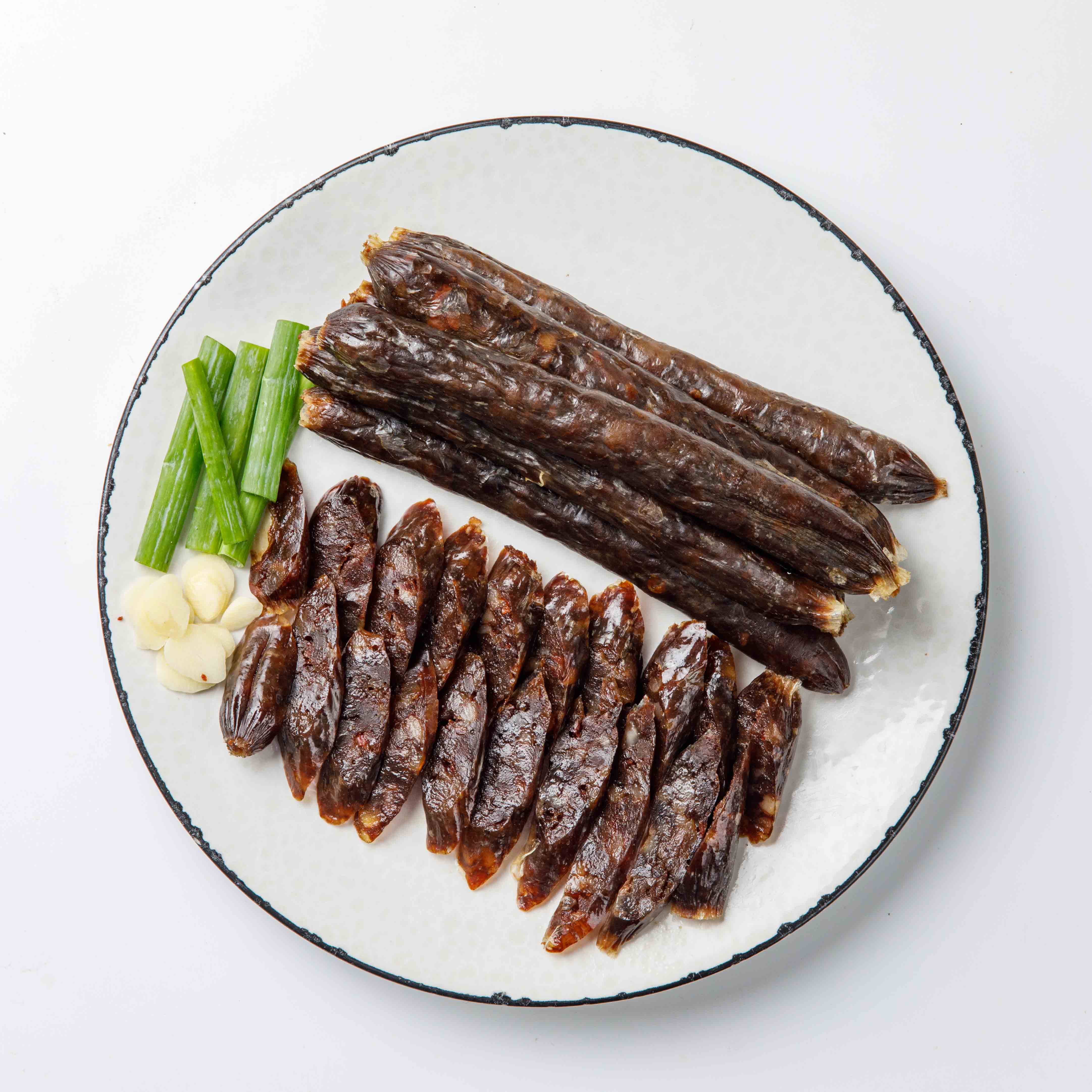 港式肝腸是香港的一種傳統臘腸,以豬肝和豬肉製成,豬肝比例較高,具有濃郁的肝香味。經過調味後灌入腸衣,再風乾或燻製而成。口感豐富,常用來蒸熟切片食用,或與米飯一起蒸煮,是香港冬季和過年期間常見的美食。
